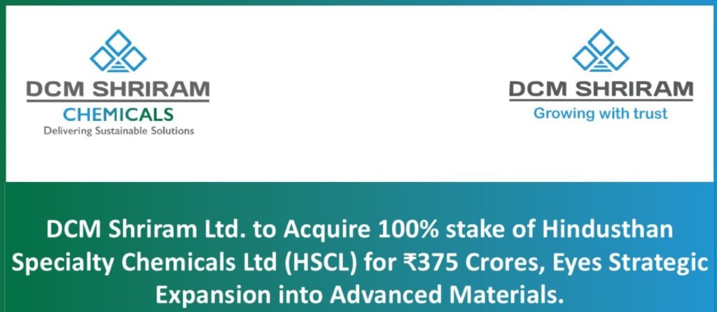 Once integrated, HSCL is expected to become an integral part of DCM Shriram’s chemicals division, supporting its roadmap toward becoming a broader based materials company. The acquisition supports the company’s commitment to enhancing shareholder value through diversification, innovation and strategic expansion.