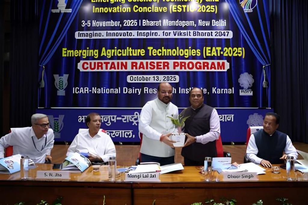 The National Dairy Research Institute (ICAR-NDRI), Karnal, hosted the Curtain Raiser of Emerging Agriculture Technologies (EAT) under the Emerging Science, Technology & Innovation Conclave (ESTIC-2025), marking the initiation of a national platform designed to enhance innovation and technology convergence in Indian agriculture. The event, held at the Dr D Sundaresan Auditorium (ICAR-NDRI, Karnal), convened senior officials, scientists, industry representatives, and experts from ICAR institutions across the country.