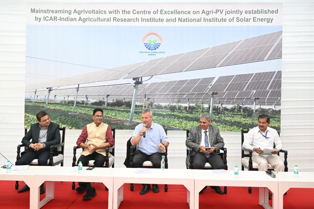 The Ministry of New and Renewable Energy (MNRE) has approved the Centre of Excellence (CoE) on Agri-Photovoltaics (Agri-PV) as a joint initiative between Indian Council of Agricultural Research-Indian Agricultural Research Institute (ICAR-IARI) and the National Institute of Solar Energy (NISE), Gurugram. The 100 kW Agri-PV pilot project at ICAR-IARI is being implemented with support from German Society for International Cooperation (GIZ) India.