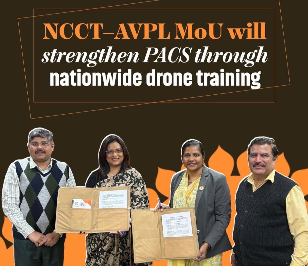 The National Council for Cooperative Training (NCCT) and AVPL International have formalised a Memorandum of Understanding to operationalise drone based skilling and technology deployment across Primary Agricultural Credit Societies (PACS), with facilitation from the Ministry of Cooperation. The agreement establishes the framework for certified training, technical support and entrepreneurship pathways, positioning PACS to integrate modern tools into their operations and expand into technology driven, income generating rural services.